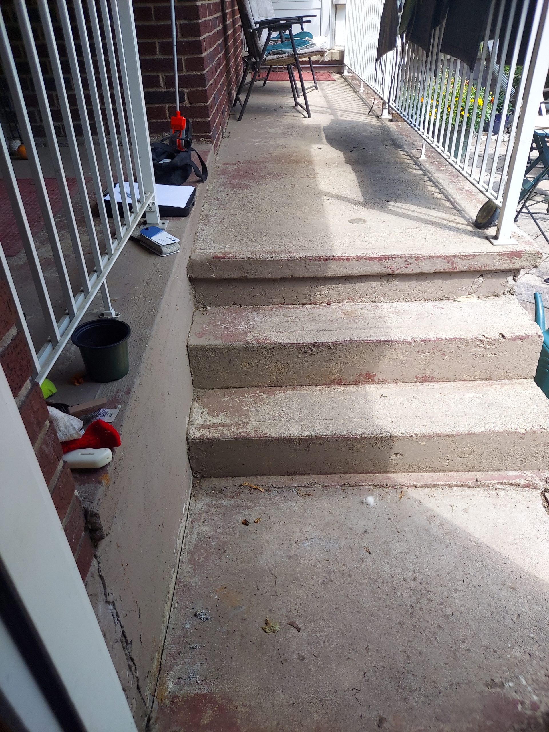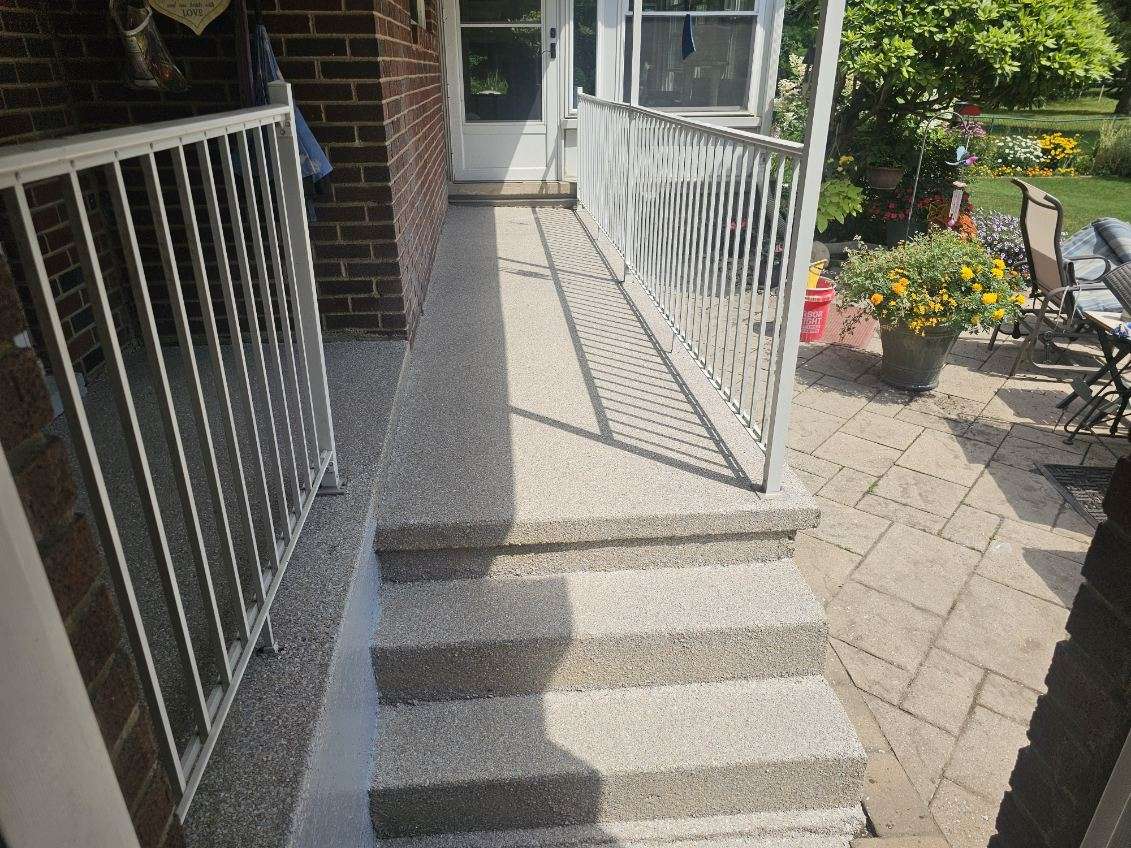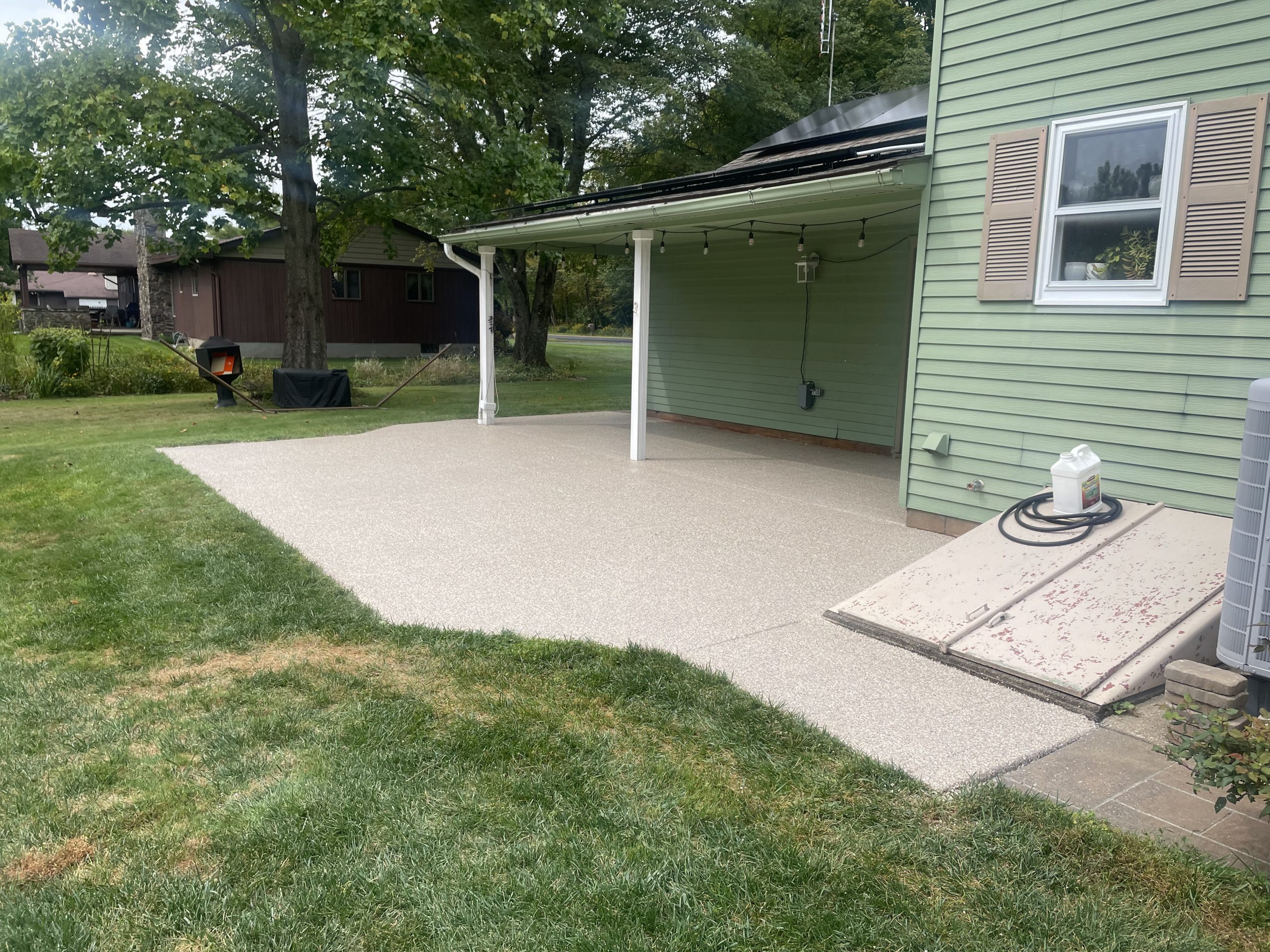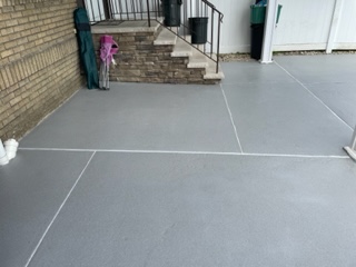 We repaired the cracks and resurfaced the patio with a Decorative Epoxy Coating.