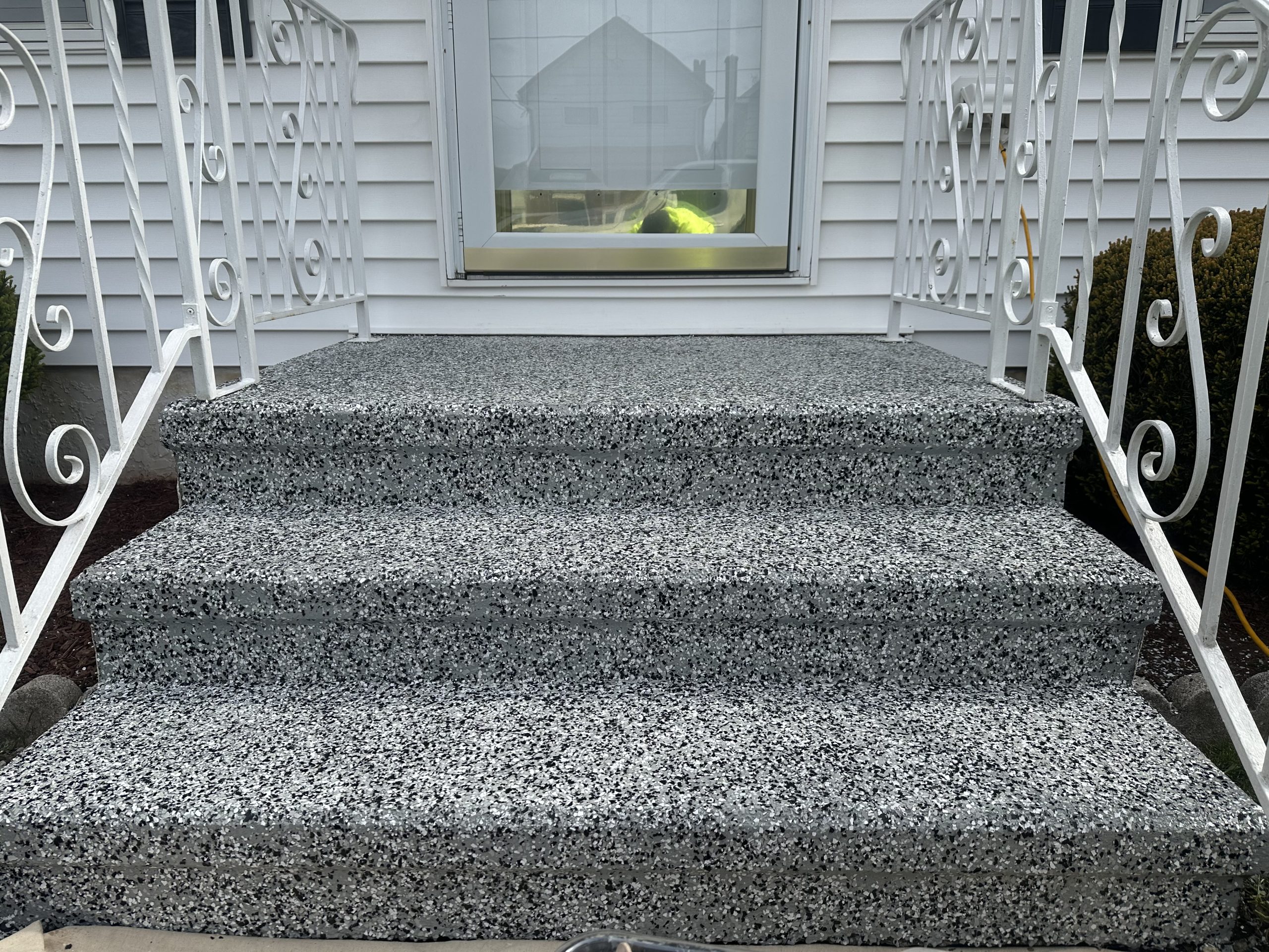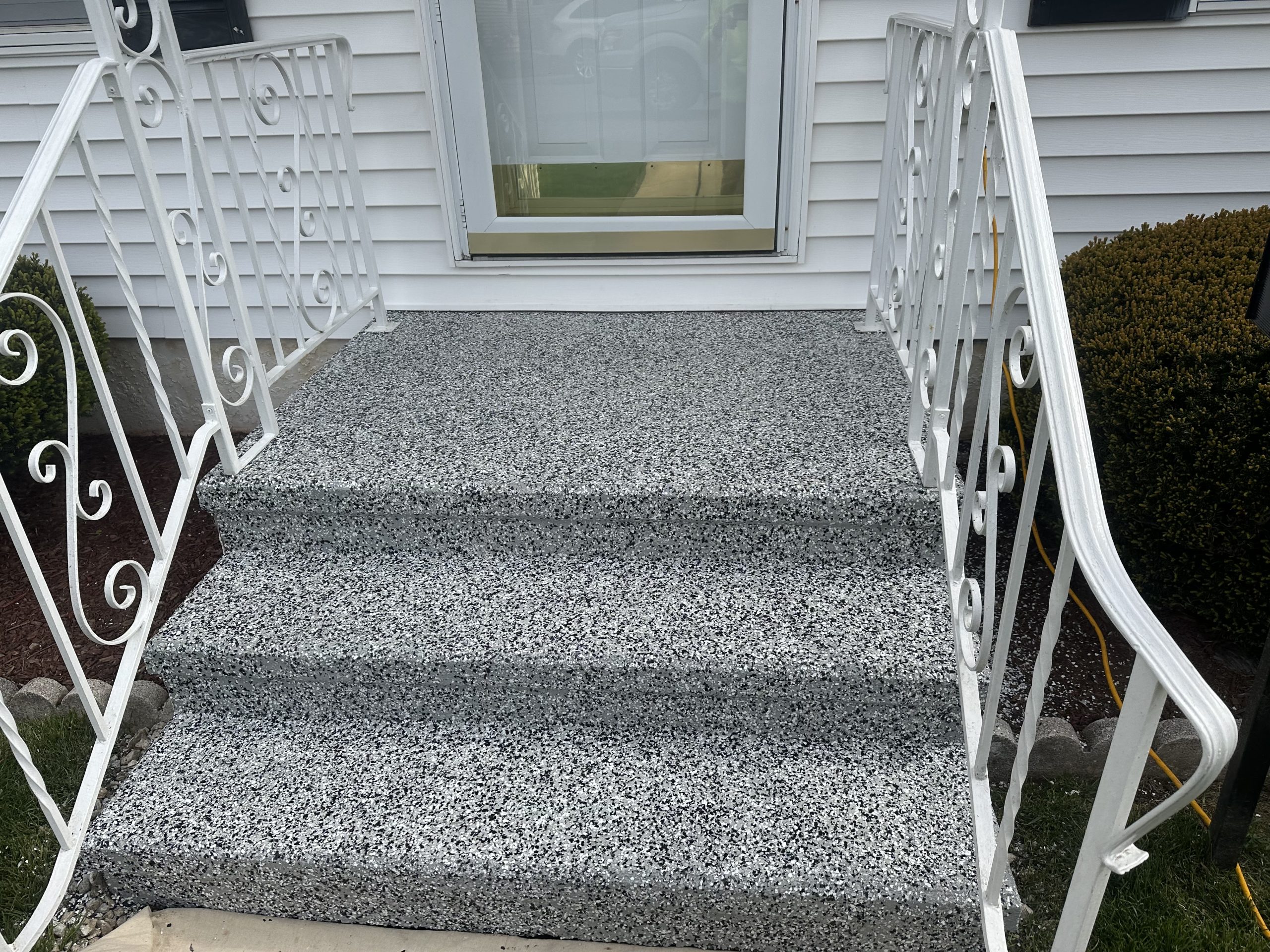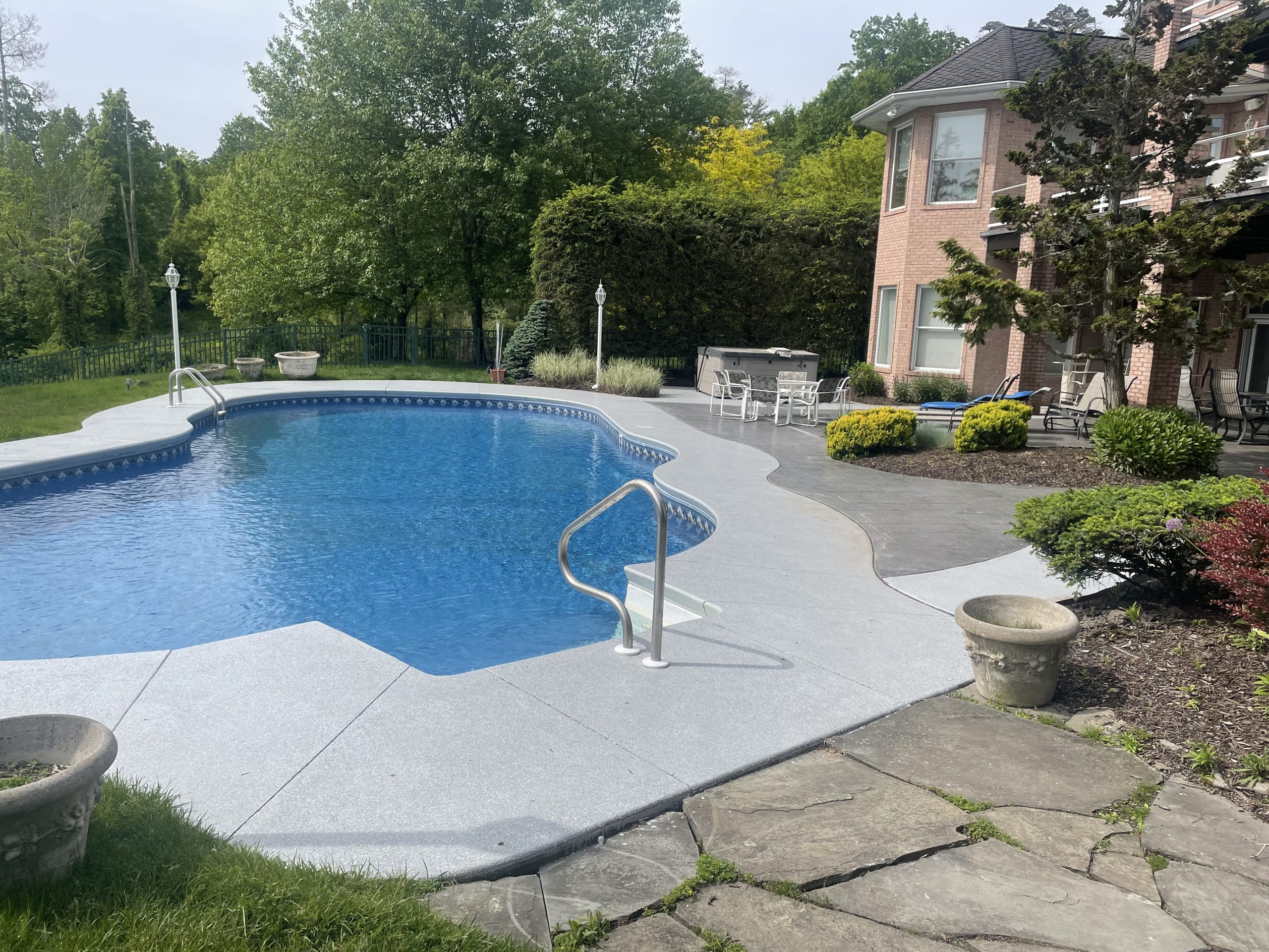 We repaired the cracks and resurfaced the patio with a Decorative Epoxy Coating.
